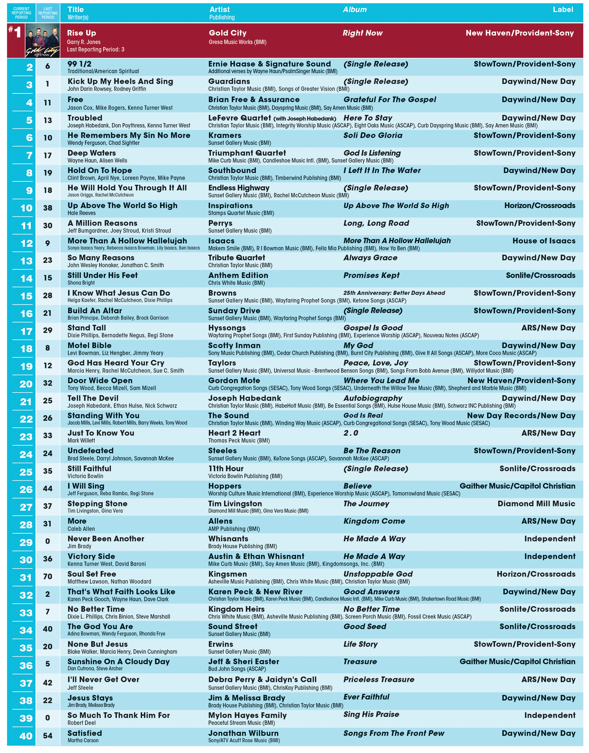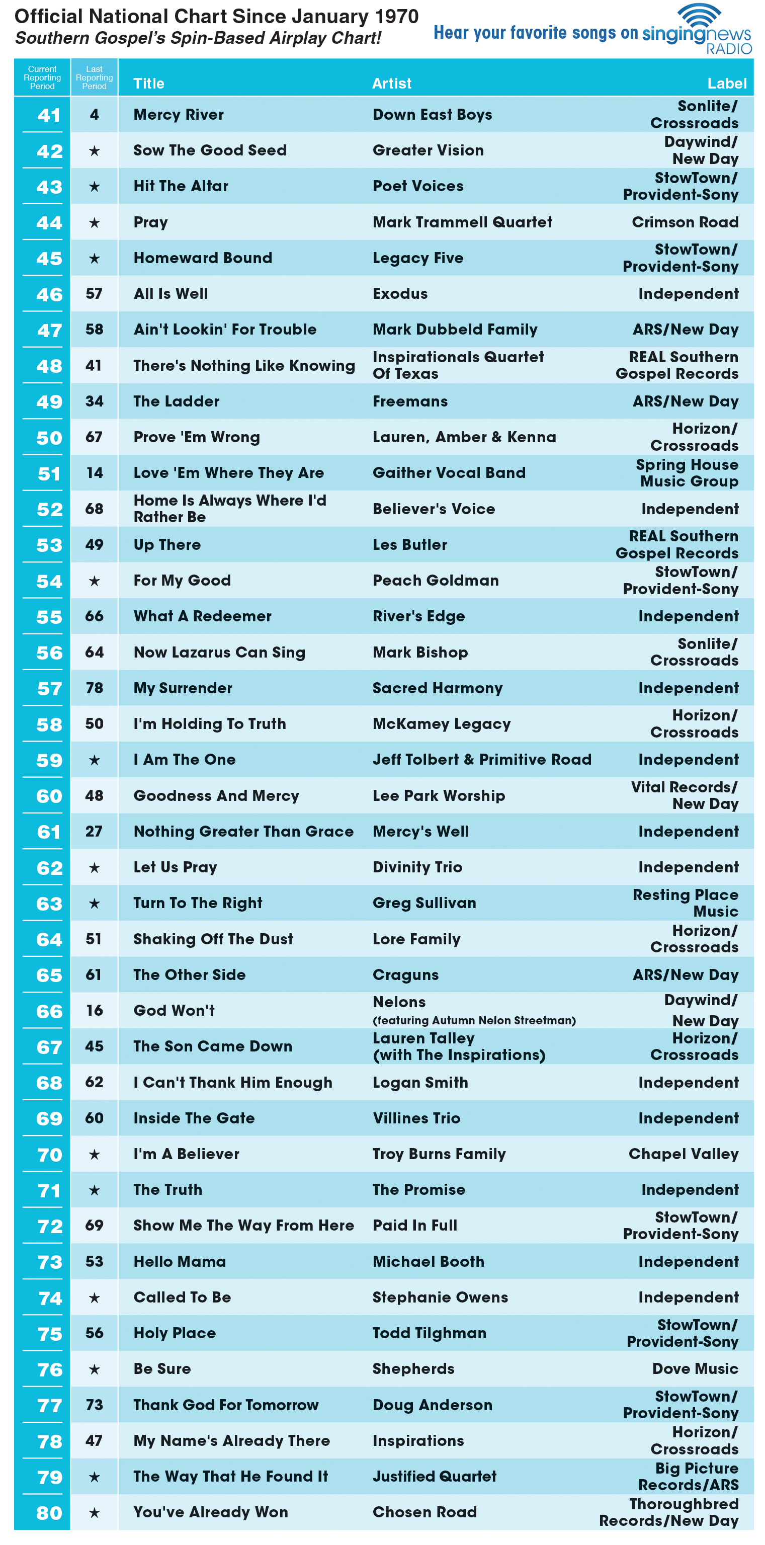 The Official Singing News Top 80 Chart